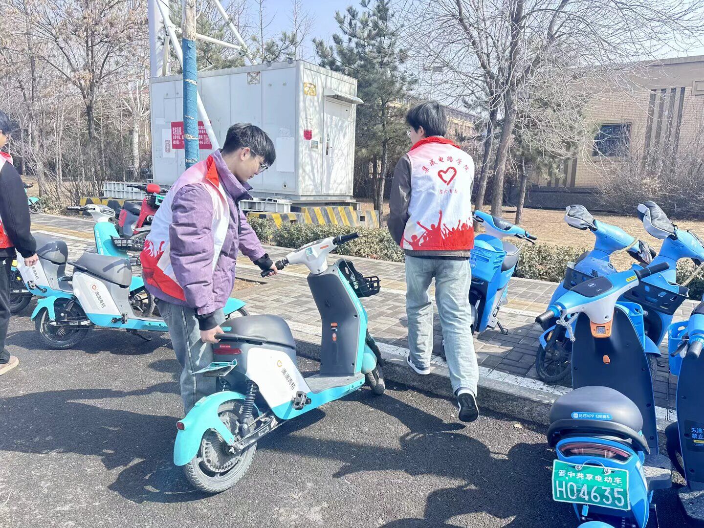 活动中,同学们分工明确,迅速行动,重点将学校门口车流和人流量较大的区域内随意停放的单车摆放排列在指定的停车区域内,并引导同学们规范停车。阳光下,志愿者们的身影忙碌而有序,用实际行动展示了青年的责任与担当。