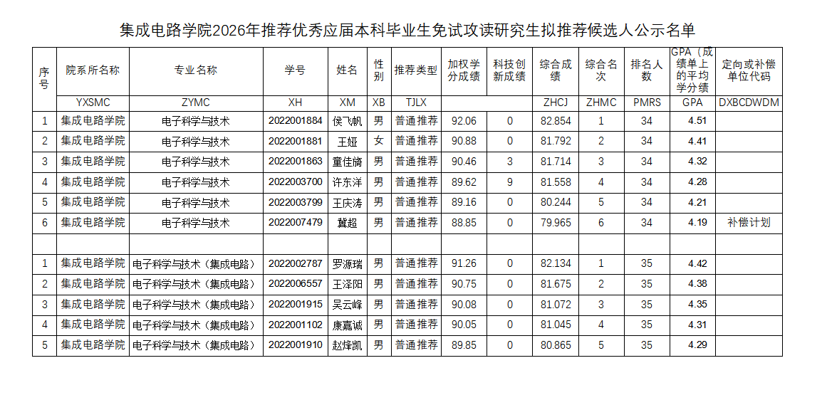 附:《伟德BV19462026年推荐优秀应届本科毕业生免试攻读研究生拟推荐候选人公示名单》