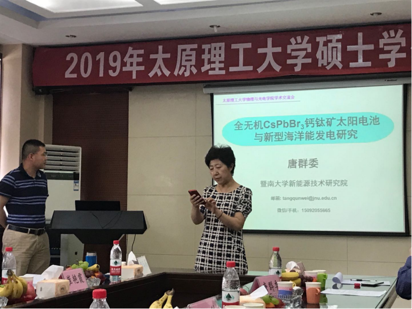 2019年5月27日下午3:00,应物理与光电工程学院邀请,暨南大学新能源技术研究院教授唐群委在我校迎西校区博学馆E座308会议室作了题为“全无机钙钛矿太阳能电池和新型海洋能捕获”学术报告。