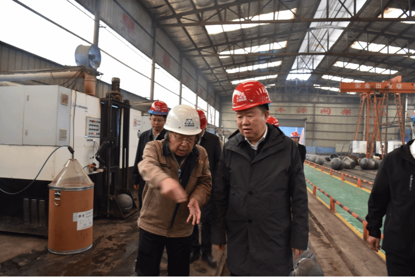 沈兴全书记带队参观了伟德BV1946教师张海涛与企业联合开发的空心焊接球自动焊接系统生产线,以及公司冲压车间、下料车间和机加车间等生产情况,山西汾阳丰源网架钢结构有限公司董事长闫育智全程为沈兴全书记介绍公司规模、发展状况、空心焊接球自动焊接系统生产线的建设情况,以及面临的问题等。