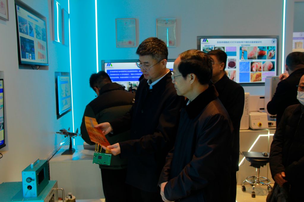 李青山副主席深入了解了实验室在微纳传感、人工智能、医工交叉等领域的研究进展与科技成果,重点听取了关于智能传感系统、生物3D打印技术、健康监测设备等方向的汇报,并与科研人员亲切交流。