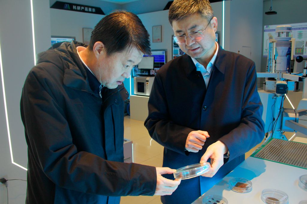 张波一行实地参观了实验室的科研平台与成果展示区,重点考察了实验室在面向医疗健康领域的创新工作,包括用于疾病早期诊断的微纳传感器、可穿戴健康监测设备以及智能医疗辅助系统等代表性科研成果。