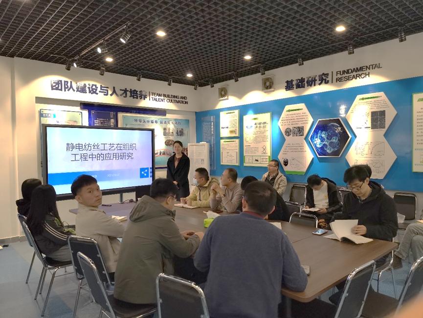 本次学术报告汇报人为成荣博士,汇报的内容是静电纺丝工艺在组织工程中的应用研究。在组织工程中,支架的设计与再生组织的功能密切相关。由于蛋白质纤维在天然细胞外基质中的仿生结构,静电纺丝制备的纳米纤维材料已成为组织工程中理想的支架材料,广泛应用于血管、骨骼、神经和肌腱/韧带等方面。静电纺丝在聚合物组分、纤维结构和生物活性分子功能化方面的多功能性,使制备具有合适机械强度和生物学性能的纳米纤维支架用于组织工程成为可能。本次报告介绍了电纺支架在各种组织工程中的最新进展,包括先进电纺支架的设计和支架在功能性组织再生中的性能,旨在为新型电纺支架的创新和提高其在组织工程应用中的潜力提供指导。通过介绍相关领域的研究成果,帮助大家更好的了解了静电纺丝工艺在组织工程中的原理与应用价值。参会的各位老师学生就学术报告相关内容进行了热烈的讨论。