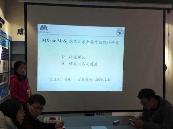 本次汇报人为刘艳同学,汇报的题目为“MXene-MoS2范德瓦尔斯异质结理论研究”。结合目前金半接触的研究现状,着重从官能化调控金半接触类型进行介绍。随后对自己的研究内容进行了汇报。最后各位老师和同学们就隧穿势垒、肖特基势垒及官能化等方面进行了热烈的讨论。