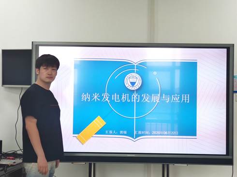 本次学术报告汇报人为郭瑞博士,汇报的内容是纳米发电机的发展与应用。郭瑞博士结合近期较高水平的论文,阐述了当前纳米发电机的发展以及取得的成果。随后通过引出纳米发电机现存的问题(功率小导致应用场景受到严重制约),提出了3点解决的思路,分别是:研究新的结构与材料、拓展应用场景(应用于生物学,如细胞、组织)、增大器件尺寸(应用于大型设备的能量收集),并通过介绍相关领域的研究成果,帮助大家更好的了解了纳米发电机的原理与应用价值。参会的各位老师学生就学术报告相关内容进行了热烈的讨论。